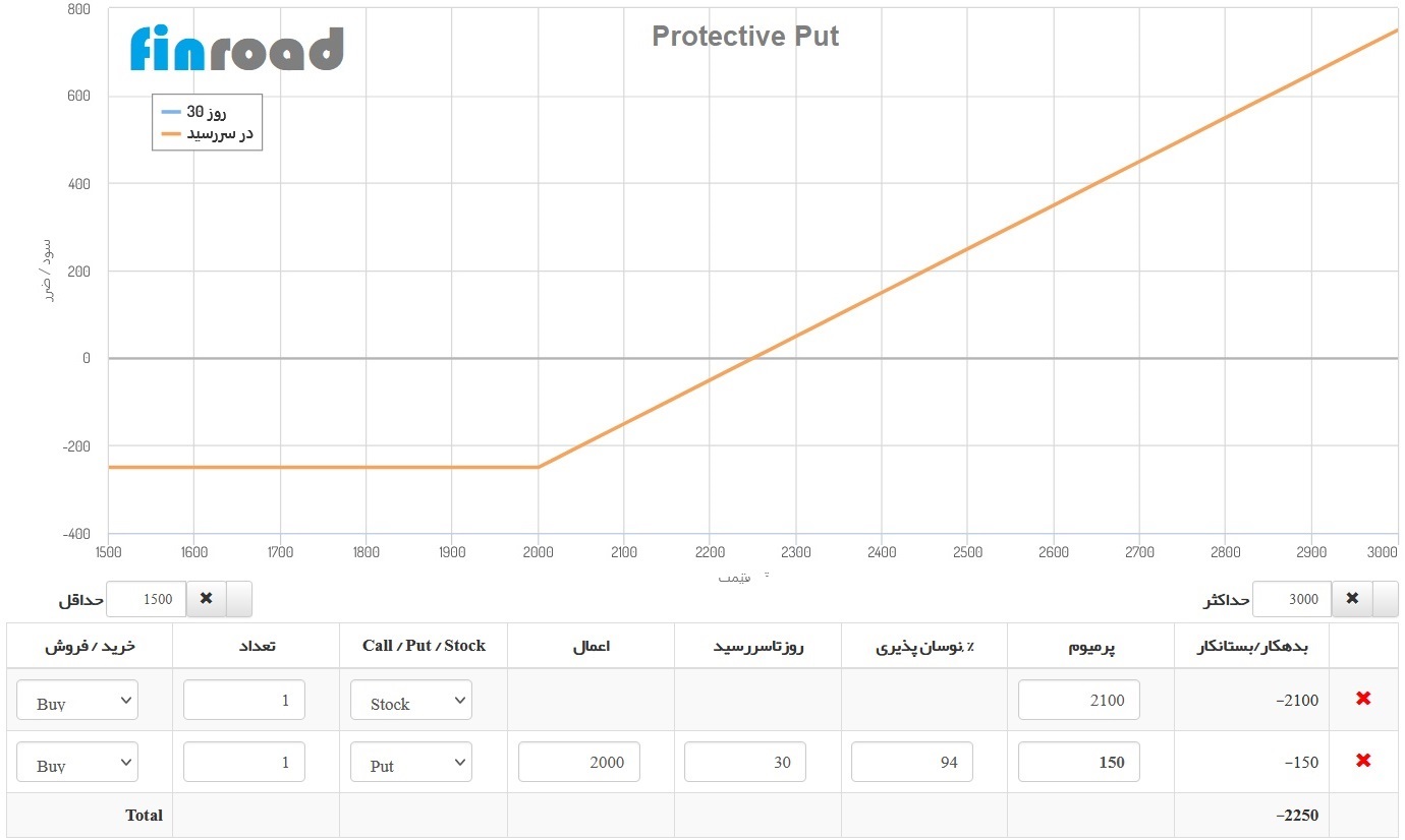 موقعیت ترکیبی انجام شود در این حالت سود اختیار فروش، زیان سهام را جبران