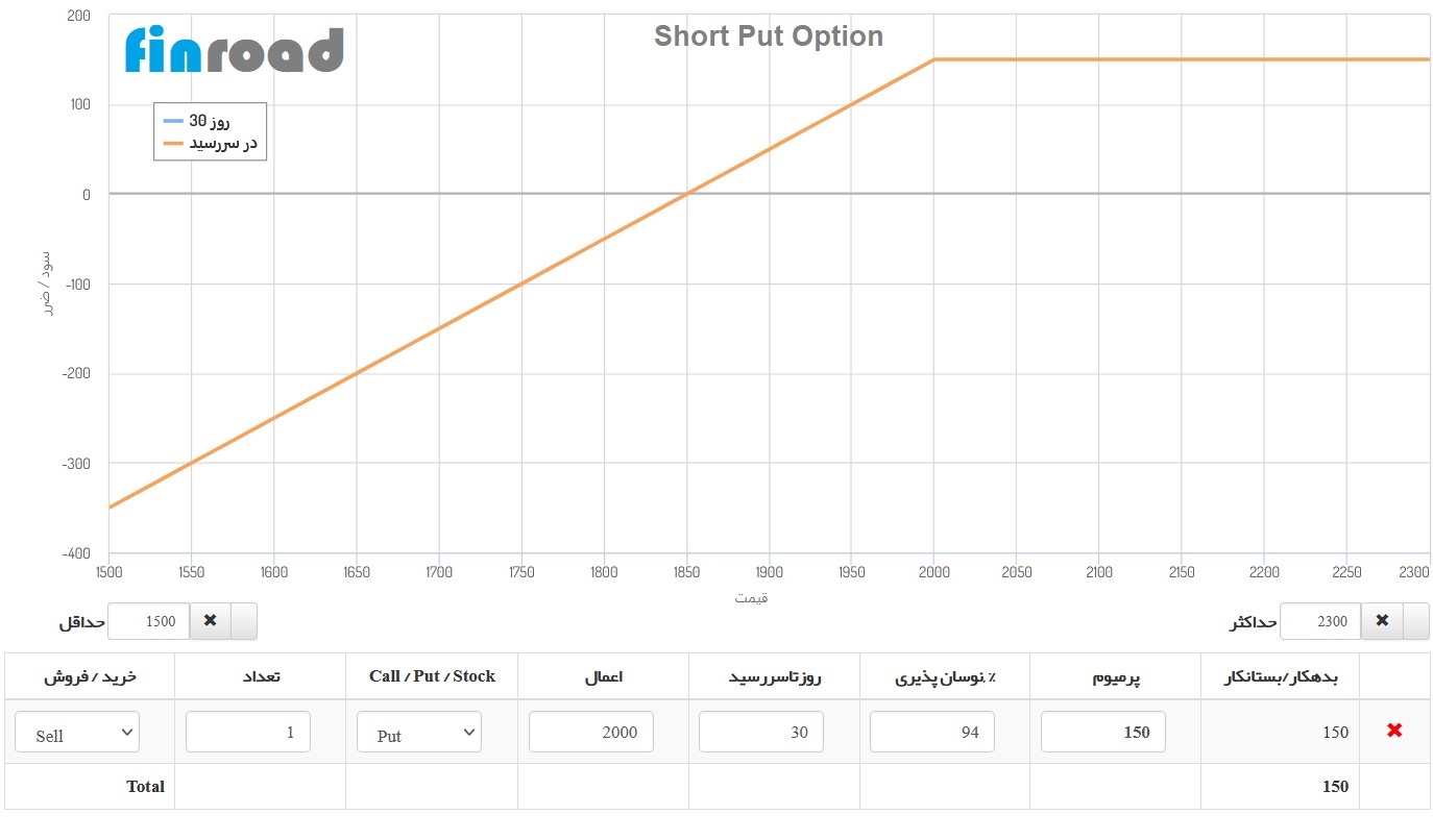 بیشترین بازده به مبلغ حاصل از فروش اختيار فروش محىود مي شود.